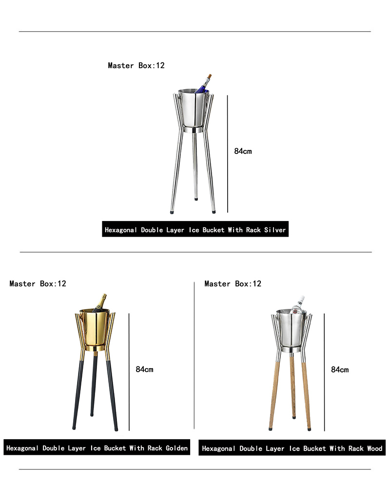Hexagonal Double Layer Ice Bucket With Rack Silver, Hexagonal Double Layer Ice Bucket With Rack Golden, Hexagonal Double Layer Ice Bucket With Rack Wood
