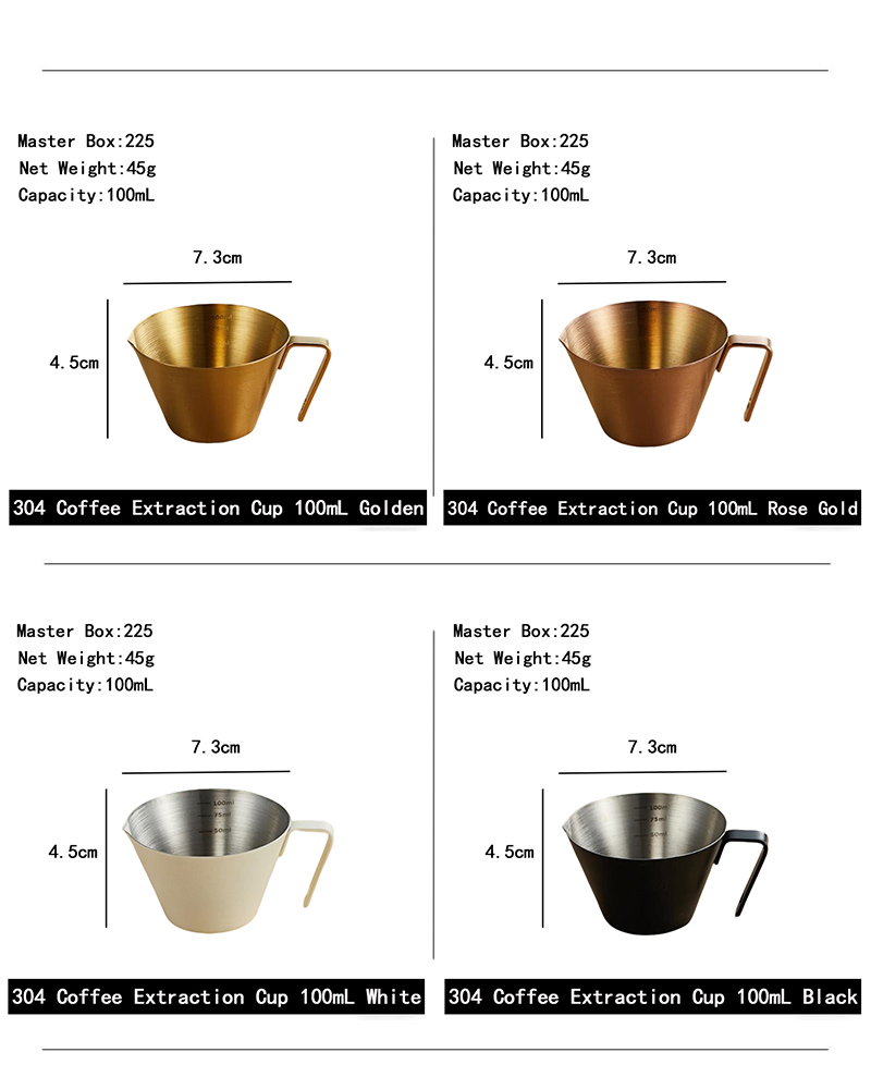 304 Coffee Extraction Cup 100mL Silver, 304 Coffee Extraction Cup 100mL Golden, 304 Coffee Extraction Cup 100mL Rose Gold, 304 Coffee Extraction Cup 100mL Black, 304 Coffee Extraction Cup 100mL White
