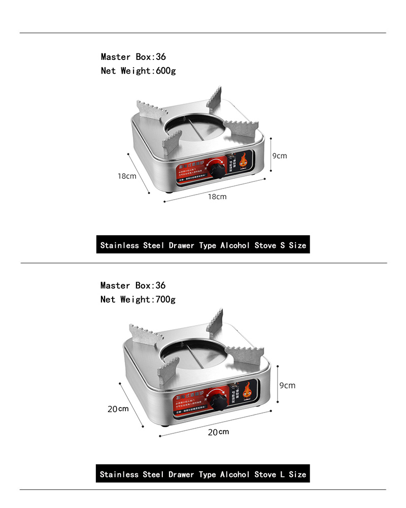 Stainless Steel Drawer Type Alcohol Stove S Size, Stainless Steel Drawer Type Alcohol Stove L Size